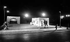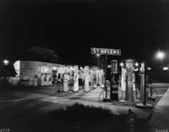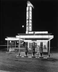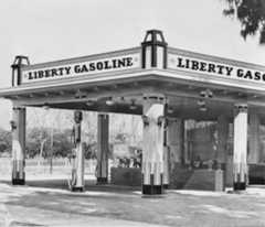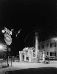 | (1931)^^ – View showing the Liberty Gas Station located in Southern California. Sign in lower-left reads: Open All Night. |