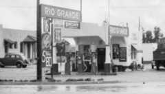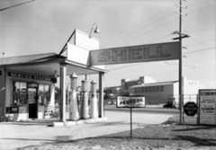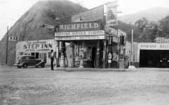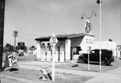 | (1954)#* – View showing the Wilco Gas and Sieberling Tire Store with gas at 26¢ per gallon. Photo by Joseph Fadler (SCE). |