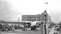 | (1936)*- You could gas up your car beneath the wings of a grounded airplane at Bob’s Air Mail Service Station on the NW corner of Wilshire Blvd. and Cochran Ave. |