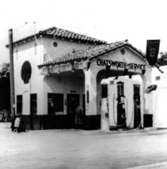 | (ca. 1929)^ - Zelzah Super Service Richfield Gas Station on the northeast corner of Reseda Blvd. and Gresham St. in Northridge. |