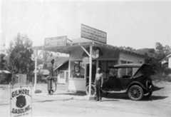 | (1920s)^^ - The Gilmore Gas Station was one of the first gas stations in Los Angeles. Located on the NE corner of La Brea and Wilshire Blvd. |