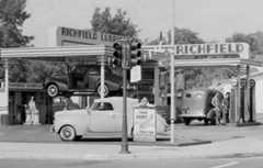 | (1950)* – Three attendants provide full service at a Richfield Gas Station located at 50 W. Las Tunas in Arcadia, Los Angeles County. Seen here is a 1951 Pontiac Chieftain Coupe. Photo Date: 12/27/50 |
