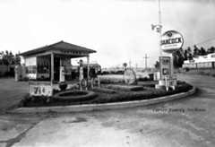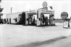 | (ca. 1937)^ - View of the Standard Stations, Inc. service station in Huntington Beach. A large oil field is seen in the background. |