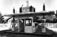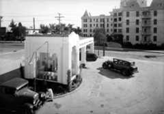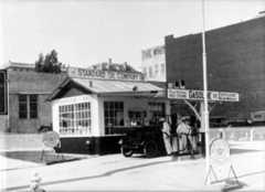| (ca. 1930)^ - Close-up view of the cashier for the Hollywood-Vine Service Station and Parking Garage. This resembles today’s all-in-one gas stations and mini-markets. |