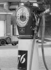| (ca. 1948)* - How to self serve at Gilmore Gas. Brea-Fax Grocery Store can be seen across the street on the north side of Beverly Boulevard. |