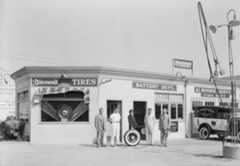 | (ca. 1930s)^ - One of the first gas stations on a lot on Imperial St., Los Angeles, shown in the 1930's. It was the workplace for a group of men from the Mexican American Community. |