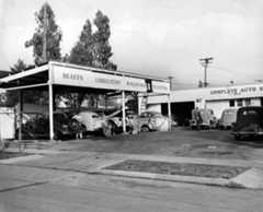 | (1942) – Mechanic working on one of several cars in the service area behind the Melrose-Sweetzer Service Station. Photo Courtesy of Chris Dubuque |