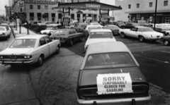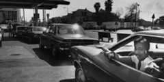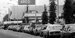 | (1979)* – Photo caption reads: "Last car in line at Olympic and Hope gas station has sign giving bad news to other gas-hunters. Sign was placed by station attendant." Suppliers barely met demand as drivers lined up at pumps. |