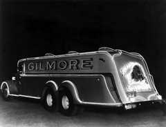 Historical Notes There were more than 1,100 Gilmore Gas Statons throughout the West that sold only Gilmore products and another 2,400 that sold them along with other brands. The clear glass globes at the top of gas pumps allowed the color of the gasoline to be seen. E.B. Gilmore jumped on this unique opportunity to become the first oil company to market its gas by its color. Blu-Green and Red Lion Gas fueled the cars and imaginations of West Coasters from the ’20s to the early ’40s. *** |