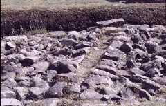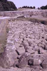 Two well-preserved sections of the Antonine Wall are located at HillfootCemetery, about a mile from theRoman bath atBearsden, located in in southwestern Scotland near Glasgow. The exposedsections, within easy walking distance of each other, are stone footingswhich lay at the base of the Wall. They provide vivid examples of the massivesize and careful construction methods used in the Wall.