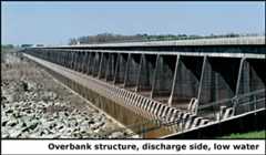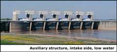 When Henry was finished, the Red River flowed into the Atchafalaya and Old River, which used to be the bottom half of the loop, flowed out of the Mississippi and into the Atchafalaya. What Henry did was make it that much easier for the Mississippi to take the route of the Atchafalaya, and it would have too, except that the head of the Atchafalaya was blocked by the biggest stubbornest logjam anyone had ever seen. Well there it was, the situation was staring them right in the face, but the folks back then were thinking in human time. They wanted to navigate the Atchafalaya and so in 1863 the State of Louisiana took out the logjam. In the blink of a geologic eye (about one hundred years) the Atchafalaya widened and increased its draw on the Mississippi so that fully thirty percent of the Mississippi was pouring down the Atchafalaya. There is a fifteen foot difference now between the elevation of the two rivers and the Atchafalaya's route to the Gulf is approx. 140 miles shorter than the Mississippi's -- water always finds the shortest route downhill. By 1950 what was geologically inevitable became humanly apparent. The Mississippi River Commission delivered a report to Congress in 1953 that detailed the imminent capture of the Mississippi by the Atchafalaya. The result would be a human catastrophe and so Congress acted. They appropriated the funds and gave the U.S. Army Corps of Engineers the phenomenal job of stopping the geologic clock. Not only did Congress require that the Corps prevent the Mississippi from changing course at Old River, they also required that the Corps maintain the status quo. They couldn't simply block the Atchafalaya. The fresh Mississippi water that flowed into the Atchafalaya was necessary for the health of the Atchafalaya swamp. Morgan City at the mouth of the Atchafalaya needed that water as did the rural economy in the Atchafalaya basin. The Corps' job was to hold the Mississippi and yet maintain a constant flow of Mississippi water into the Atchafalaya. In effect they had to build a valve into the Mississippi that they could open and close as required. Easier said than done.