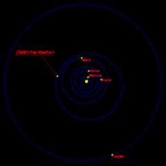 ![]() | 1998 Contest Winner -Michael Gibson,Flagstaff Arizona The name is from the exceptionally well-preserved prehistoric cliffdwelling located in Tsegi Canyon, in what is now Navajo NationalMonument in northern Arizona. It was built and occupied from the 10ththrough the 13th centuries by the Kayenta Anasazi or Hisatsinom(``ancient ones" in Hopi), likely ancestors of the modern Hopi people.The origin of the name is apparently from a Navajo phrase ``kits'iil"or ``kin ts'iil" meaning ``houses that have been left behind." The namewas suggested by Michael T. Gibson of Flagstaff, Arizona, as winner ofa contest to name this asteroid in conjunction with the 1998 FlagstaffFestival of Science. | ![]() |