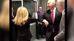 And he hugged one of the evacuees, whose birthday happened to be on 5 March.