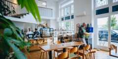 Az újlipótvárosi, Duna-parti pékség egy olyan minőségi találkozóhely, ahol a skandináv dizájn és a frissen sült péksütik kifinomult összhangja uralkodik. A dizájn minimalista, a kínálat alapvetően kenyér- és levelestészta-fókuszú, viszont nem kifejezetten a francia vonal, mert spanyol finomságokat is készítenek.