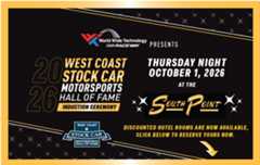West Coast Stock Car/Motorsports Hall of Fame sponsoring Vermeil Classic preludeCalistoga Speedway - Courtesy of Calistoga Speedway and Bill SessaCALISTOGA, Calif. (August 11, 2025) - Calistoga Speedway will kick off its first weekend of racing in six years by inducting six new members into the track’s Hall of Fame.The induction dinner...West Coast Stock Car/Motorsports Hall of Fame supports Calistoga Speedway reopening