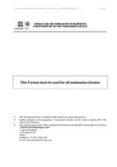 "64. The same form approved by the Committee is used for the submission of nominations of cultural and natural properties. Al though it is recognized that all properties have specific characteristics, states Parties are encouraged to provide information and documentation on the following items: