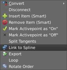 - Right-click on the dotted line that indicates the position of the curved Spline, not on any handle, but on the dotted line between handles.