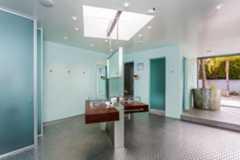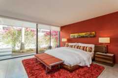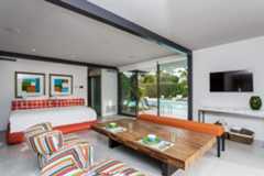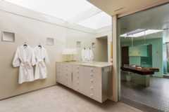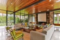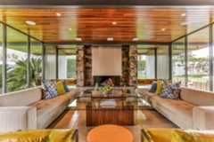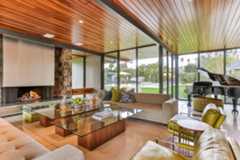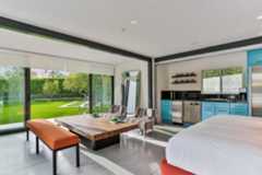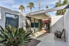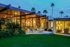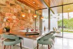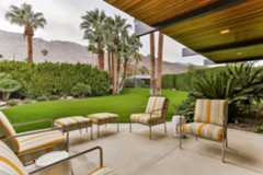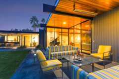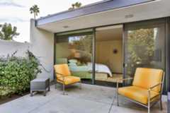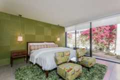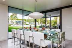 Floor-to-ceiling windows throughout bring the beauty of the desert, the clusters of palm trees, and the majestic San Jacinto Mountains into the estate. This furnished house rental is one of the finest examples of Mid-Century architecture in Southern California, the birthplace of the progressive design movement.