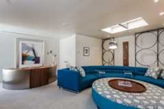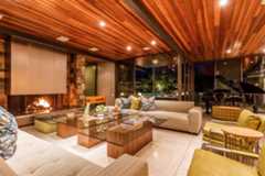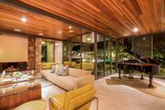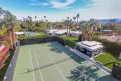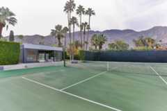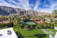 Built on a secluded 1.3-acre desert oasis compound, the estate is exceptionally private, and offers 6 bedrooms and 7½ baths between the main house, the guest house overlooking the pool, and the casita adjacent to the tennis court. The living room boasts fantastic scale, generous seating, a grand piano, fireplace, and cocktail bar.