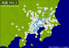 【速報】関東・中部で地震 M4.3 東京、神奈川、埼玉、千葉、静岡などで揺れ 震源は千葉県北西部 地震が及んだ地域人口3810万人