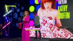 Kathy Griffin accepts the Advocate of the Year award onstage during the 2025 Out100 Celebration.