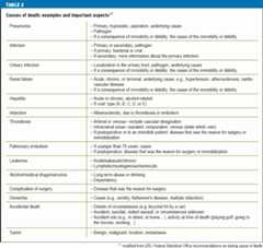 In addition, one may be guided by “death types” that have been described as a “thanatological bridge” between the underlying disease and the immediate cause of death (18,19) (Figure 2gifppt):