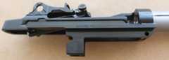 The connector lock pin is installed on the underside of the receiver and secured with a roll pin. This is where the rear of the operation rod's spring guide (i.e. recoil assembly) connects to the receiver.