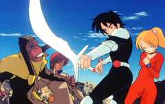 Movies like BIRTH are why some people complain that anime looks great, but makes no sense. BIRTH is the signature work of the late, greatYoshinori Kanada, an animator and animation director who was one of the first to really introduce innovation to super robot cartoons in the 1970s—Toei's earlier stuff was great fun to watch, but guys like Kanada infused their work with style and weight, and really pushed the medium forward. In the realm of goofy robot cartoons, his work really stood out. Of course, characterizing BIRTH as a Kanada project is a bit unfair to its director,Shinya Sadamitsu, not to mention other collaborators likemecha designerMakoto Kobayashi, but it's Kanada's sense of style and action that helps BIRTH rise above its utterly rudimentary, forgettable story. It's about a kid on a planet who finds a magical sword and is pursued for it, but like I said, the story doesn't matter – this movie is all about style and action, a series of high-tech Roadrunner vs. Coyote jokes that keeps upping the ante of absurdity. In spite of that weakness, BIRTH is an animator's playground; mad geniuses behind classics likeCowboy Bebop andMagic Knight Rayearth also worked on this movie. In spite of its flaws, I could still watch this film over and over again.