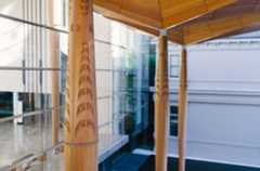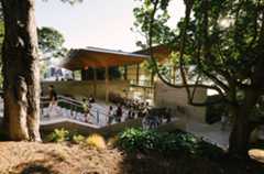 Between the terraces and the roof canopy of kauri wood, large windows allow a view from the Gallery's forecourt through the building to the park and beyond – inviting discovery and opening the Gallery to Albert Park and public spaces.