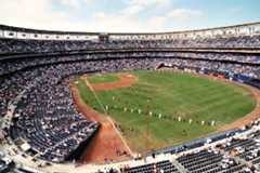 At one time, it was hard to tell that Jack Murphy Stadium was a multipurpose stadium, but after an expansion in 1997, that changed. After years of having minor league teams playing in San Diego, local sportswriter Jack Murphy began to build up support for a new stadium in the mid 1960’s. If built it would be the home to the San Diego Chargers (NFL) and an expansion baseball franchise. Located in Mission Valley outside San Diego, construction on the massive four tier stadium began in 1965. The first game was played on April 19, 1967 between the Chargers and the Detroit Lions. The Pacific Coast League’s Padres played at the stadium until 1969, when MLB awarded the area a professional franchise. The expansion San Diego Padres began playing at the stadium on April 8, 1969. Only 23,370 people filled the 50,000 seat stadium on opening day.