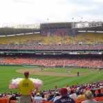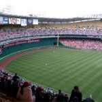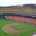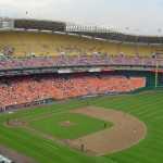 When one looks back at the history of RFK Stadium, its legacy will be known as the home of NFL’s Washington Redskins and not as a baseball stadium. For nearly five decades the Senators played atGriffith Stadium, that held around 30,000 fans. In 1955, owner Clark Griffith died and his son, Calvin, took control of team. During this time the District of Columbia began discussing the possibility of building a multipurpose stadium to house both the Senators and Redskins. However, by the late 1950s rumors began that the Senators were looking to relocate. That rumor became a reality after the 1960 season when the Senators moved to Minneapolis toMetropolitan Stadium. A new multi-purpose stadium was already under construction along the Anacostia River in DC when the Senators relocated. Although the original Senators moved, MLB awarded Washington a new franchise, also known as the Senators for the 1961 season. The team played one year at Griffith Stadium before moving into D.C. (District of Columbia) Stadium on April 9, 1962. D.C. Stadium became the first of many cookie cutter stadiums that would open over the next decade. Later named in honor of Robert F. Kennedy, baseball was played for a decade at RFK Stadium as the Senators moved to Arlington, TX becoming the Texas Rangers after the 1971 season. The final Senators game at the stadium was held on September 30, 1971 in front of a sparse crowd. Although the stadium lacked a baseball tenant after the 1971 season, it was the home of the Washington Redskins (NFL) until 1996 when they moved toFedEx Field.