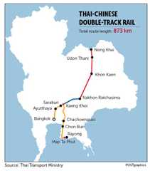 The framework concerns two routes of dual standard-gauge tracks. One is from Bangkok to Kaeng Khoi district of Saraburi province and the other from Map Ta Phut town of Rayong province via Kaeng Khoi and Nakhon Ratchasima to Nong Khai province.