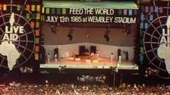 Live Aid, a multi-venue rock music concert, was organised by Bob Geldof and Midge Ure to raise funds for Ethiopia famine relief. It was one of the largest-scale satellite link-ups and television broadcasts of all time with an estimated 400 million viewers, across 60 countries, watching the live broadcast.