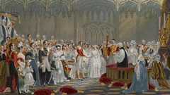 She wore robes of white satin and red velvet. The five-hour ceremony was a little chaotic as the Dean of Westminster, who had presided over previous coronations, was ill. Victoria was handed the orb at the wrong moment and the Archbishop of Canterbury forced a ring on the wrong finger, which took her an hour to remove. After the ceremony Victoria returned to Buckingham Palace for a family banquet and watched fireworks from her mother’s balcony.