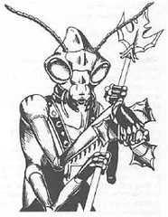 The other thing we get in 2nd Edition is variety as well. Dark Sun introduces the Tohr-Kreen, or Noble thri-kreen as they are called by nonkreen. The tohr-kreen are larger, more cultured, civilized version of the thri-kreen. They are more intelligent and deadly than their brethren, possessing new weapons like the kyorkcha (which is an upgraded chatkcha) and fight with more powerful versions of thri-kreen weaponry.