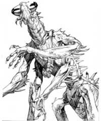 Third Edition was also very good to the Thri-Kreen. They become much more humoanoid (as seen above), but retain much of what characterizes them, including innate psionics, a paralysis bite, and multiple weapon fighting. This last one is the biggest one for this edition. 3.x was all about leveraging iterative attacks–well, okay, 3.x was really about playing a Wizard and being better than every class at their own game. Especially the ones you’d think a Wizard wouldn’t be very good at. But the rules for multiple attacks really blossomed in 3.x, and the thri-kreen were poised to take massive advantage of this.