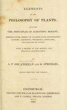 Translated from Candolle and Sprengel's Grundzüge der wissenschaftlichen Pflanzenkunde, Leipzig, 1820, of which pt. 1-3 were an extract from Candolle's Théorie élémentaire de la botanique, 2. éd., Paris, 1819.