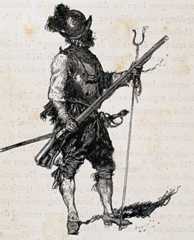 The second, German infantry, commanded by Peter Mewtas, armed with the arquebus, an early form of musket fired with a bipod support.