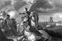 During this combat the English Royal Standard, carried by Sir Andrew Flammock, was nearly taken. Sir Andrew escaped from the struggle with the Standard less its staff.