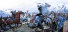 On the Scots right wing, Prince Henry came up with his knights and the men from Strathclyde and Teviot, the knights leading the charge on horseback.