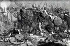 The main mass of the Scottish army began a headlong retreat across the Broxburn to escape from the pursuing English horse and foot.