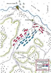 In their new positions much of the Scottish infantry was still confronted by the steep gorge which made access to the English army positioned on the far bank extremely difficult.