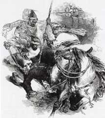 Attack of the British 3rd King’s Own Light Dragoons at the Battle of Ferozeshah on 22nd December 1845 during the First Sikh War: picture by Martens