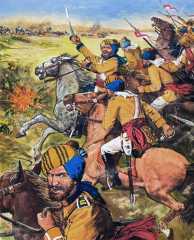 Skinner’s Horse at the Battle of Moodkee on 18th December 1845 during the First Sikh War: picture by Cecil Doughty