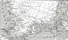 Various islands provided protection for the network of German naval bases, the most important being the heavily fortified Heligoland. The recessed area of German coastline, in which several of the bases lay, is known as the ‘Heligoland Bight’. The Island of Heligoland lies mid-way across the opening to the Bight, fifty miles out to sea.