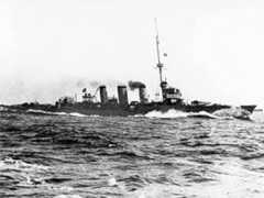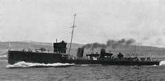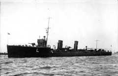 British destroyer HMS Liberty; one of the destroyers of 4th Division of 1st Destroyer Flotilla, heavily damaged by gunfire from SMS Mainz during the Battle of Heligoland Bight on 28th August 1914 in the First World War