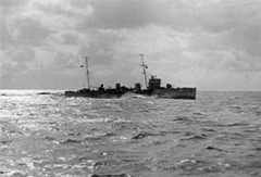 Soon after beginning the sweep the 1st Flotilla encountered the German destroyer V187 . Blunt’s ships fired on V187, but then fearing the ship might be Commodore Keyes in HMS Lurcher Blunt permitted V187 to steam away to the south-west.