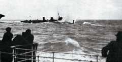 British destroyers rescuing the crew of V187 during the Battle of Heligoland Bight on 28th August 1914 in the First World War