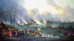 Destruction of the Danish Fleet at the Battle of Copenhagen on 2nd April 1801 in the Napoleonic Wars: picture by Thomas Whitcombe