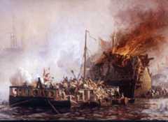 British destroying Danish ships under repair after the Battle of Copenhagen on 2nd April 1801 in the Napoleonic Wars